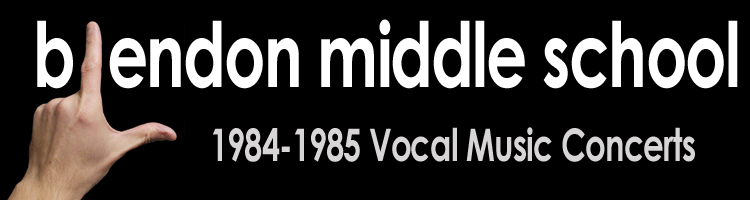 This page is for those of us who attended Blendon Middle School in Westerville, Ohio during the 1984-1985 school year and remember Mrs. Johnson's glee and mixed chorus groups. I enjoyed serving as accompanist and apparently had the forethought to dub copies of the holiday and spring concerts that particular year. I recently discovered these recordings and found that they bring back a lot of memories of the era, so I thought I'd share them.